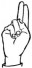 На ћирилици написано ИРИНА ГЛУШИЋ састоји се из 11 слова [?]. Исписано ћириличном једноручном азбуком за глувонеме: