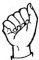 На ћирилици написано ИРИНА ГЛУШИЋ састоји се из 11 слова [?]. Исписано ћириличном једноручном азбуком за глувонеме: